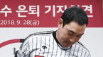 [OSEN=잠실,박준형 기자] 28일 오후 서울 잠실구장에서LG 트윈스 투수 봉중근(38)이 은퇴 기자회견을 가졌다.봉중근은 이날 열리는 KIA전에 앞서 마지막 투구를 하며 은퇴식을 갖는다.봉중근이 고개를 숙인채 아쉬워하고 있다. / soul1