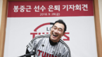 [OSEN=잠실,박준형 기자] 28일 오후 서울 잠실구장에서LG 트윈스 투수 봉중근(38)이 은퇴 기자회견을 가졌다.봉중근은 이날 열리는 KIA전에 앞서 마지막 투구를 하며 은퇴식을 갖는다,봉중근이 포즈를 취하고 있다. / soul1014@osen.co.kr