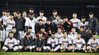 [OSEN=잠실,박준형 기자] 28일 오후 서울 잠실구장에서 진행된 '2018 신한은행 MY CAR KBO리그' LG 트윈스와 KIA 타이거즈의 경기종료 후 은퇴식에서 봉중근이 후배들과 함께 포즈를 취하고 있다./ soul1014@osen.co.kr