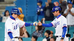 [OSEN=잠실,박준형 기자] 29일 오후 서울 잠실구장에서 진행된 '2018 신한은행 MY CAR KBO리그' 두산 베어스와 LG 트윈스의 경기, 5회말 1사 2루 두산 양의지가 2점 홈런을 날린뒤 동료들의 축하를 받고 있다. / soul1014@osen.co.kr