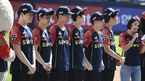 [OSEN=수원,박준형 기자] 30일 경기도 수원시 수원kt위즈파크에서 열린 '2018 신한은행 MY CAR KBO리그' kt 위즈와 롯데 자이언츠의 경기에 앞서 2018 LCK 서머 스플릿 우승한 kt 롤스터 선수단에 kt 팬들 향해 인사를 하고 있다. / soul1014@ose