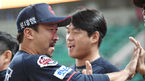 [OSEN=인천, 곽영래 기자] 2일 오후 인천 SK행복드림구장에서 '2018 신한은행 MYCAR KBO리그' SK 와이번스와 롯데 자이언츠의 경기가 열렸다.1회말 2사 롯데 이병규가 SK 로맥의 뜬공을 잡아내 이닝을 마친 뒤 동료들의 축하를 받고 있다