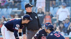 [OSEN=대전, 박재만 기자] 3일 오후 대전 중구 한화생명이글스파크에서 '2018 신한은행 MY CAR KBO리그' 한화 이글스와 롯데 자이언츠의 경기가 열렸다.6회말 2사 1,3루 한화 강경학의 타구를 잡아 아웃 시킨 채태인이 그라운드에 넘어