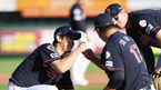[OSEN=잠실, 이대선 기자] 3일 오후 서울 잠실야구장에서 ‘2018 신한은행 MYCAR KBO리그’ LG와 kt의 경기가 열렸다.8회말 무사에서 LG 오지환이 번트에 성공하고 한혁수 코치와 하이파이브를 하고 있다./sunday@osen.co.kr