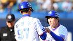 [OSEN=대구, 이동해 기자] 3일 오후 대구 삼성라이온즈파크에서 열린 '2018 신한은행 MY CAR KBO리그' 삼성 라이온즈와 KIA 타이거즈의 경기, 5회말 1사 1,3루 삼성 김성훈이 2타점 적시타를 뽑아낸 후 강명구 코치와 하이파이브를 하고