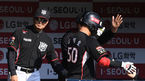 [OSEN=잠실, 이대선 기자] 3일 오후 서울 잠실야구장에서 ‘2018 신한은행 MYCAR KBO리그’ LG와 kt의 경기가 열렸다.5회초 2사에서 kt 강백호가 우중간 솔로홈런을 치고 홈에서 이진영의 축하를 받고 있다./sunday@osen.co.kr