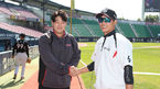 [OSEN=잠실, 한용섭 기자] LG와 KT 선수들이 3일 잠실구장에서 전날 거친 플레이에 대한 화해의 장면을 연출했다.KT 박경수, 김민과 LG 양석환,가르시아는 3일 잠실구장에서 화해의 악수와 포옹을 했다. 서로전날 보복성 슬라이딩에
