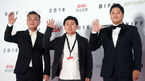 [OSEN=부산, 이동해 기자] 4일 오후 부산 해운대 영화의 전당에서 열린 제23회 부산국제영화제 레드카펫 행사에 배우 김의성-김정식 감독-김대명이 참석하고 있다. / eastsea@osen.co.kr