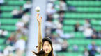 [OSEN=잠실, 지형준 기자] 6일 오후 서울 잠실야구장에서 열린 '2018 신한은행 MYCAR KBO리그' 두산 베어스와 LG 트윈스의 경기, 경기에 앞서 아이즈원 미야와키 사쿠라가 시타를 하고 있다. /jpnews@osen.co.kr