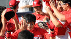 [OSEN=잠실, 지형준 기자] 7일 오후 서울 잠실야구장에서 열린 '2018 신한은행 MYCAR KBO리그' 두산 베어스와 KIA 타이거즈의 경기. 4회초 2사 1,2루에서 KIA 김민식이 역전 스리런포를 날리고 동료선수들과 기뻐하고 있다. /jpnews@osen.co.kr