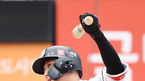 [OSEN=수원, 곽영래 기자] 9일 오후 경기도 수원 kt위즈파크에서 '2018 신한은행 MY CAR KBO리그’ kt 위즈와 한화 이글스의 경기가 열렸다.1회말 2사 만루 한화 샘슨이 kt 황재균을 3루수 앞 땅볼로 처리한 뒤 자책하고 있다. / youngrae@o