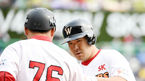 [OSEN=수원, 곽영래 기자] 9일 오후 경기도 수원 kt위즈파크에서 '2018 신한은행 MY CAR KBO리그’ kt 위즈와 한화 이글스의 경기가 열렸다.2회초 2사 2루 한화 김회성이 투런 홈런을 때려낸 뒤 동료들에게 축하받고 있다. / youngrae@osen.