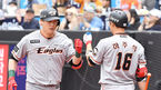 [OSEN=수원, 곽영래 기자] 9일 오후 경기도 수원 kt위즈파크에서 '2018 신한은행 MY CAR KBO리그’ kt 위즈와 한화 이글스의 경기가 열렸다.2회초 2사 2루 한화 김회성이 투런 홈런을 때려낸 뒤 하주석과 주먹을 맞대고 있다. / youngrae@