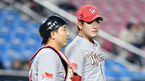 [OSEN=잠실, 이동해 기자] 10일 오후 서울 잠실야구장에서 열린 '2018 신한은행 MYCAR KBO리그' 두산 베어스와 SK 와이번스의 경기, 9회말 실점 허용한 SK 서진용-허도환 배터리가 이야기를 나누고 있다. / eastsea@osen.co.kr