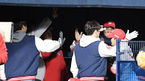 [OSEN=잠실, 이동해 기자] 10일 오후 서울 잠실야구장에서 열린 '2018 신한은행 MYCAR KBO리그' 두산 베어스와 SK 와이번스의 경기, 8회초 2사 SK 이재원이 솔로홈런을 쏘아올린 후 코칭스태프에게 축하를 받고 있다. / eastsea@osen.co.kr
