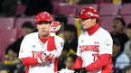 [OSEN=광주, 이대선 기자] 12일 오후 광주-KIA챔피언스필드에서 ‘2018 신한은행 MY CAR KBO리그’ KIA와 롯데의 경기가 열렸다.1회말 2사 2,3루에서 KIA 김주찬이 우중간 2타점 적시 2루타를 치고 김민우 코치와 하이파이브를 하고