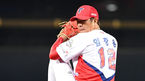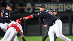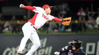 [OSEN=수원, 지형준 기자] 12일 오후 수원케이티위즈파크에서 열린 '2018 신한은행 MYCAR KBO리그' KT 위즈와 넥센 히어로즈의 경기, KT 황재균이 쌀쌀해진 날씨에 워머를 착용하고 장난을 치고 있다. /jpnews@osen.co.kr