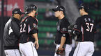 [OSEN=잠실, 곽영래 기자] 13일 오후 서울 잠실야구장에서 '2018 신한은행 MYCAR KBO리그' 두산 베어스와 kt 위즈의 경기가 열렸다.9회말 무사 1,2루 kt 김진욱 감독이 마운드에 올라 선수들과 이야기를 나누고 있다. / youngrae@osen.co.kr