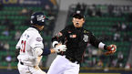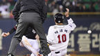 [OSEN=잠실, 곽영래 기자] 13일 오후 서울 잠실야구장에서 '2018 신한은행 MYCAR KBO리그' 두산 베어스와 kt 위즈의 경기가 열렸다.5회말 1사 3루 kt 박경수가 두산 정수빈의 내야 땅볼때 1루 베이스 터치를 하려다 정수빈과 충돌하고 있