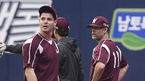 [OSEN=박준형 기자] 2018 신한은행 MY CAR KBO 와일드카드 결정전을 하루 앞둔 15일 오후 서울 고척스카이돔에서 넥센 히어로즈가 훈련을 가졌다.나이트 투수 코치가 브리검과 이야기를 나누고 있다. / soul1014@osen.co.kr