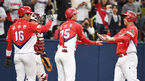 [OSEN=고척, 손용호 기자] 16일 서울 고척스카이돔에서 '2018 신한은행 MYCAR KBO리그 포스트시즌' 넥센 히어로즈와 KIA 타이거즈의 와일드카드결정전 1차전 경기가 열렸다.6회초 이범호가 투런 홈런을 치고 김민식의 환영을 받고 있다
