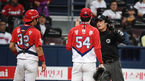 [OSEN=고척, 곽영래 기자] 16일 오후 서울 고척스카이돔에서 '2018 신한은행 MYCAR KBO리그 포스트시즌' 넥센 히어로즈와 KIA 타이거즈의 와일드카드결정전 1차전 경기가 열렸다.5회말 무사 만루 우효동 구심이 넥센 이정후의 뜬공때