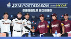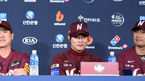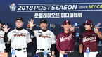 [OSEN=대전, 이대선 기자] 18일 오후 대전 ‘모임공간국보’ 대회의실(4층)에서 ‘2018 신한은행 MY CAR KBO 포스트시즌 준플레이오프 미디어데이’가 열렸다.한화 송은범, 이성열, 한용덕 감독, 넥센 장정석, 김하성, 김상