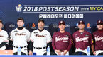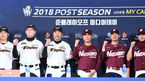 [OSEN=대전, 이대선 기자] 18일 오후 대전 ‘모임공간국보’ 대회의실(4층)에서 ‘2018 신한은행 MY CAR KBO 포스트시즌 준플레이오프 미디어데이’가 열렸다.한화 송은범, 이성열, 한용덕 감독, 넥센 장정석 감독, 김상수,