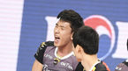 [OSEN=박준형 기자] 18일 서울 장충체육관에서 도드람 2018~2019시즌 V리그 남자부 우리카드와 OK저축은행의 경기가 펼쳐졌다.우리카드는 시즌 1패, OK저축은행은 시즌 1승을 기록하고 있다.2세트 OK저축은행가 득점 후 기뻐하고 있다.