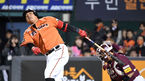 [OSEN=대전, 이대선 기자] 19일 오후 대전 한화생명이글스파크에서 ‘2018 신한은행 MY CAR KBO 포스트시즌 준플레이오프’ 한화와 넥센의 경기가 열렸다.6회초 2사에서 넥센 박병호가 중전 안타를 치고 세리머니를 펼치고 있다.