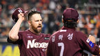 [OSEN=대전, 이대선 기자] 19일 오후 대전 한화생명이글스파크에서 ‘2018 신한은행 MY CAR KBO 포스트시즌 준플레이오프’ 한화와 넥센의 경기가 열렸다.5회말 2사 만루에서 한화 김태균을 삼진으로 처리한 넥센 해커가 환호하