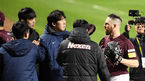 [OSEN=대전, 지형준 기자] 19일 오후 대전 한화생명이글스파크에서 ‘2018 신한은행 MY CAR KBO 포스트시즌 준플레이오프’ 한화와 넥센의 1차전이 열렸다. 4회말 수비를 마치고 넥센 해커가 동료선수들과 하이파이브를 하고 있