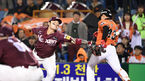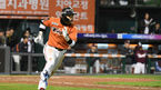 [OSEN=대전, 이대선 기자] 19일 오후 대전 한화생명이글스파크에서 ‘2018 신한은행 MY CAR KBO 포스트시즌 준플레이오프’ 한화와 넥센의 경기가 열렸다.5회말 1사 1루에서 한화 이용규의 안타 때 1루주자 정은원이 3루로 슬라