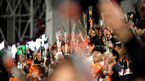 [OSEN=대전, 최규한 기자] 19일 오후 대전 한화생명이글스파크에서 '2018 신한은행 MY CAR KBO리그 포스트시즌' 준플레이오프 1차전 한화 이글스와 넥센 히어로즈의 경기가 열렸다.4회말 한화 홈 팬들이 장미꽃을 들고 응원을 펼치고