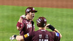 [OSEN=대전, 지형준 기자] 19일 오후 대전 한화생명이글스파크에서 ‘2018 신한은행 MY CAR KBO 포스트시즌 준플레이오프’ 한화와 넥센의 1차전이 열렸다. 4회초 무사 2루에서 넥센 박병호 선제 투런포를 날리고 샌즈와 기뻐하