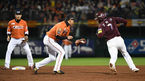 [OSEN=대전, 이대선 기자] 19일 오후 대전 한화생명이글스파크에서 ‘2018 신한은행 MY CAR KBO 포스트시즌 준플레이오프’ 한화와 넥센의 경기가 열렸다.2회초 무사에서 넥센 임병욱의 땅볼 때 한화 정은원이 1루주자 김하성을