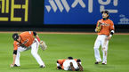 [OSEN=대전, 이대선 기자] 19일 오후 대전 한화생명이글스파크에서 ‘2018 신한은행 MY CAR KBO 포스트시즌 준플레이오프’ 한화와 넥센의 경기가 열렸다.2회초 2사에서 한화 하주석이 넥센 김민성의 타구를 놓치고 있다./sunday@o