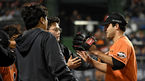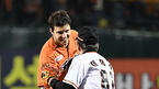 [OSEN=대전, 이대선 기자] 19일 오후 대전 한화생명이글스파크에서 ‘2018 신한은행 MY CAR KBO 포스트시즌 준플레이오프’ 한화와 넥센의 경기가 열렸다.경기에 앞서 시구자로 나선 이희수 전 한화 감독이 헤일과 인사를 나누