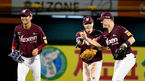 [OSEN=대전, 지형준 기자] 넥센이 한화를 이틀 연속 울렸다. 넥센은 20일 대전 한화생명이글스파크에서 열린 준플레이오프 2차전서 임병욱의 연타석 홈런을 앞세워 한화를 7-5로 꺾었다.경기후 넥센 임병욱이 김규민, 샌즈와 승리