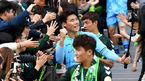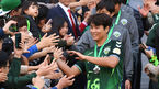 [OSEN=전주, 최규한 기자] 6번째 K리그 정상에 오른 전북 현대가 20일 오후 전주월드컵경기장에서 '2018 KEB 하나은행 K리그1' 우승 시상식을 진행했다.전북 김신욱이 팬들과 우승 하이파이브를 나누고 있다.지난 32라운드 울산 원정