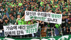[OSEN=전주, 최규한 기자] 6번째 K리그 정상에 오른 전북 현대가 20일 오후 전주월드컵경기장에서 '2018 KEB 하나은행 K리그1' 우승 시상식을 진행했다.우승 세리머니를 펼치는 전북 선수단과 최강희 감독을 향해 서포터들이 격려를