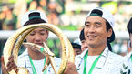 [OSEN=전주, 최규한 기자] 6번째 K리그 정상에 오른 전북 현대가 20일 오후 전주월드컵경기장에서 '2018 KEB 하나은행 K리그1' 우승 시상식을 진행했다.전북 송범근과 김민재가 샴페인을 뿌리며 즐거워하고 있다.지난 32라운드 울산 원