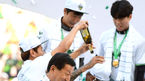 [OSEN=전주, 최규한 기자] 6번째 K리그 정상에 오른 전북 현대가 20일 오후 전주월드컵경기장에서 '2018 KEB 하나은행 K리그1' 우승 시상식을 진행했다.전북 김민재-송범근-홍정호가 팬들과 우승 하이파이브를 나누고 있다.지난 32라운