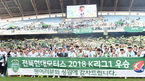 [OSEN=전주, 최규한 기자] 6번째 K리그 정상에 오른 전북 현대가 20일 오후 전주월드컵경기장에서 '2018 KEB 하나은행 K리그1' 우승 시상식을 진행했다.전북 선수들과 코칭스태프가 서포터들과 포즈를 취하고 있다.지난 32라운드 울산
