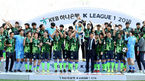 [OSEN=전주, 최규한 기자] 6번째 K리그 정상에 오른 전북 현대가 20일 오후 전주월드컵경기장에서 '2018 KEB 하나은행 K리그1' 우승 시상식을 진행했다.전북 최강희 감독과 선수들이 우승 트로피를 들고 포즈를 취하고 있다.지난 32라