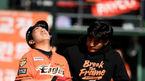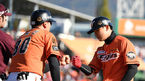 [OSEN=대전, 지형준 기자] 20일 오후 대전 한화생명이글스파크에서 ‘2018 신한은행 MY CAR KBO 포스트시즌 준플레이오프’ 한화와 넥센의 2차전이 열렸다. 2회말 2사 1루에서 한화 정은원이 우전안타를 날리고 고동진 코치와 주