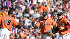 [OSEN=대전, 지형준 기자] 20일 오후 대전 한화생명이글스파크에서 ‘2018 신한은행 MY CAR KBO 포스트시즌 준플레이오프’ 한화와 넥센의 2차전이 열렸다. 2회초 2사 2루에서 한화 샘슨이 송광민의 호수비에 기뻐하고 있다. /jpne