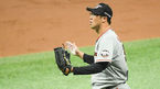 [OSEN=고척, 박준형 기자] 22일 오후 서울 고척 스카이돔에서 '2018 신한은행 MY CAR KBO리그 포스트시즌' 준플레이오프 3차전 넥센 히어로즈와 한화 이글스의 경기가 열렸다.4회초 넥센 선두타자 박병호의 내야땅볼때 한화 하주석 유
