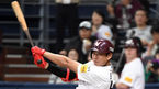 [OSEN=고척, 손용호기자] 22일 오후 서울 고척 스카이돔에서 '2018 신한은행 MY CAR KBO리그 포스트시즌' 준플레이오프 3차전 넥센 히어로즈와 한화 이글스의 경기가 열렸다.1회말 1사 넥센 송성문이 안타를 치고 있다. /spjj@osen.co.kr