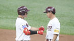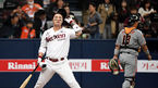 [OSEN=고척, 박준형 기자] 22일 오후 서울 고척 스카이돔에서 '2018 신한은행 MY CAR KBO리그 포스트시즌' 준플레이오프 3차전 넥센 히어로즈와 한화 이글스의 경기가 열렸다.1회말 1사 넥센 송성문이 안타를 날린뒤 기뻐하고 있다. /sou